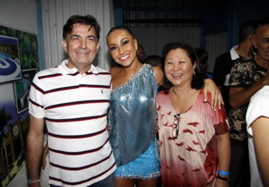 Ao lado dos pais, Omar e Aparecida, Sabrina Sato se prepara para receber a coroa de rainha de bateria da Vila Isabel, na quadra da escola de samba, na zona norte do Rio (13/11/2010).