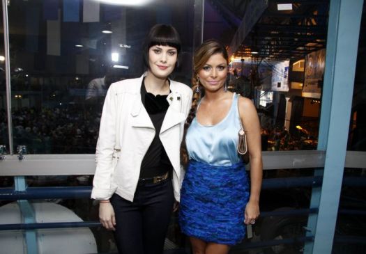 As atrizes Mayana Moura e Bárbara Borges na cerimônia de coroação de Sabrina Sato, a nova rainha de bateria da Vila Isabel, na quadra da escola de samba, na zona norte do Rio (13/11/2010).