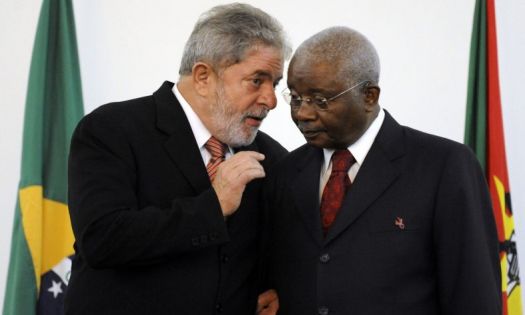 O presidente Luiz Inácio Lula da Silva conversa com o presidente de Moçambique, Guebuza, durante visita do brasileiro a Maputo.